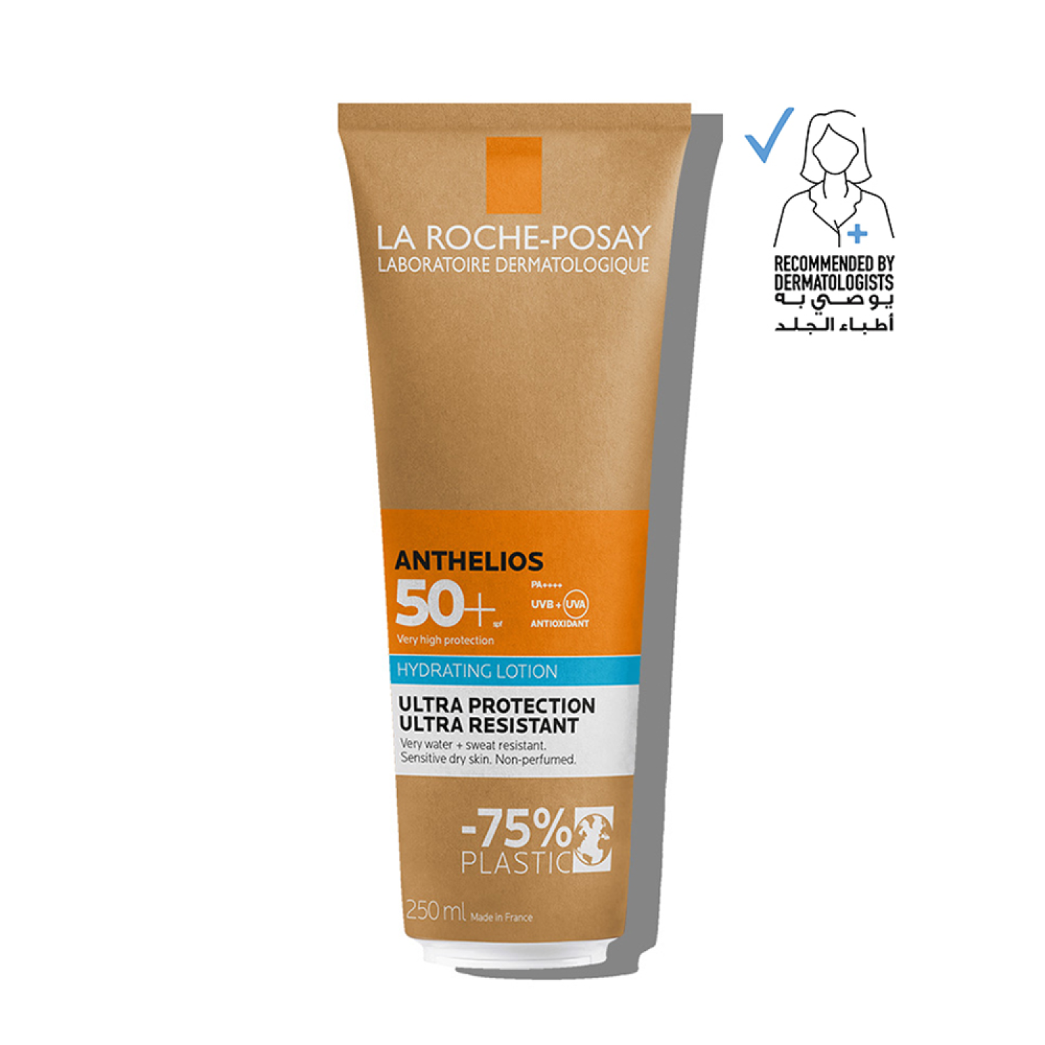 لاروش بوزيه أنثيليوس لوشن مرطب بعامل حماية SPF50+ هو واقي شمسي للوجه والجسم يوفر حماية عالية جدًا ضد الأشعة فوق البنفسجية UVA وUVB.