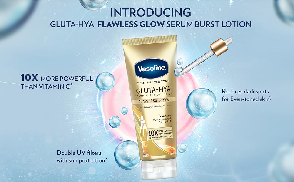 لوشن فازلين هيلثي برايت جلوتا-هيا سيروم برست لإصلاح الإشراقة الليلية (Vaseline Healthy Bright Gluta-Hya Serum Burst Lotion Overnight Radiance Repair).