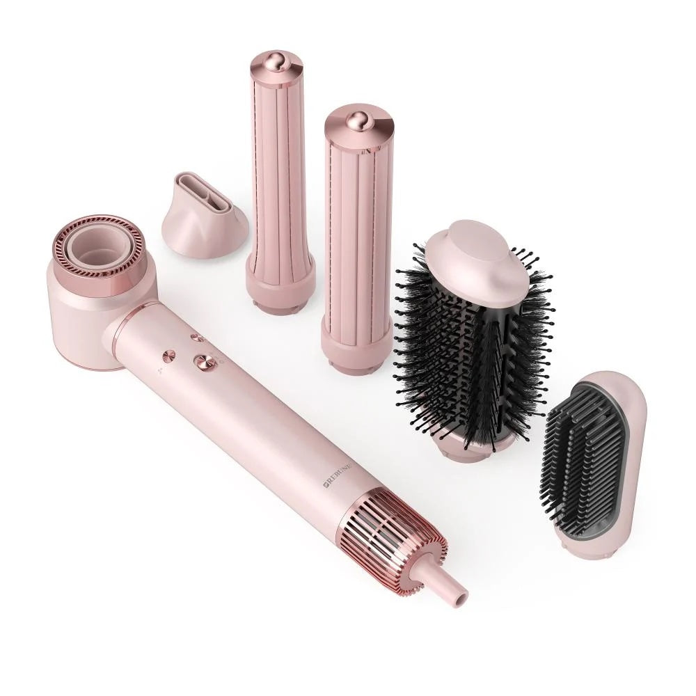 اكتشفي الجيل الجديد من تصفيف الشعر مع مصفف الشعر الاحترافي 7 في 1، مصمم ليمنحك منتج جديد في العديد. تتميز بمحرك مركز تطوير الأعمال الصغيرة عالي السرعة لتجفيف أسرع ثلاثة مرات، باحتوائه على تقنية أيونات السلببة التي تحتوي على شعرك من الجفاف والتلف. .